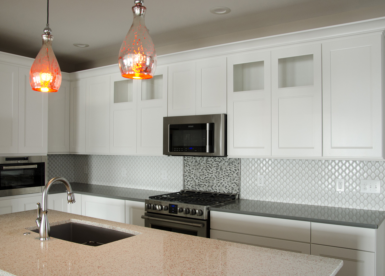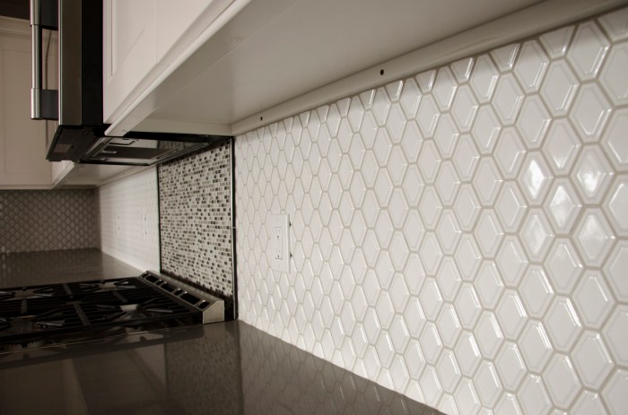 The beautiful mosaic tile inlay in this shower is framed and surrounded by large white subway tile. The subway tile extends throughout the entire room, wrapping around the enormous soaking tub. The larger floor tiles are set on a diagonal pattern and the shower floor is set in a stunning herringbone pattern. All of this comes together to create the vision that our client had for a Luxury Home Spa.