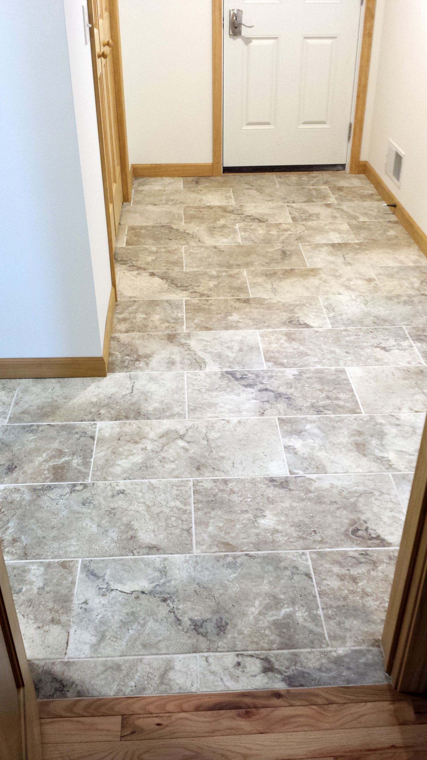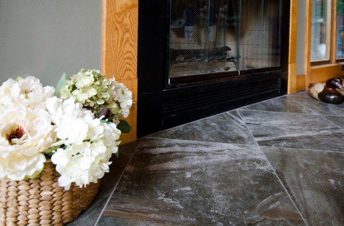 Our client had a small tiled entryway that needed to be updated and they decided to also do the fireplace hearth with the same material. This porcelain tile brings a fresh new look to this hearth.